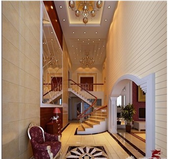 6、如果是復式的房子,一樓大廳的地板可以采用石材進行鋪設(shè),這樣會顯得大氣。如果是普通居室,客廳與餐廳最好還是鋪設(shè)木質(zhì)地板,若部分用地板,部分用地磚,房間反而顯得狹小。