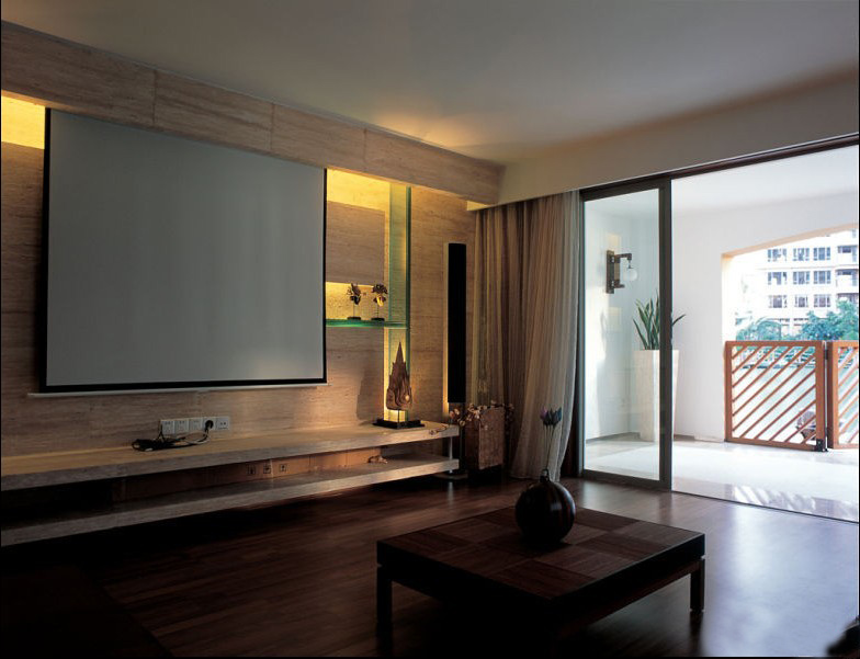 客廳根據(jù)業(yè)主愛(ài)好裝的是投影,燈光的設(shè)計(jì),讓人覺(jué)得又該是哪部大片上印。