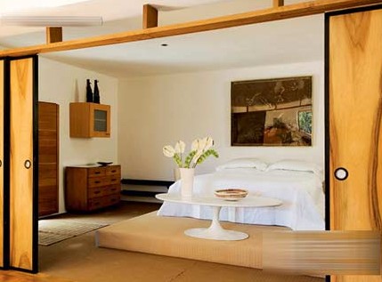 這是一間極具意大利風(fēng)情的小屋,其屋主和設(shè)計(jì)師是一來自英國(guó),名為MichaelPlayford的20世紀(jì)古董家具收藏家。因?yàn)樗惺詹胤侵藓腿毡竟哦呐d趣,其家居都滲入了絲絲的日式室內(nèi)設(shè)計(jì)風(fēng)格??蛷d安裝了日式的兩開木趟門,能分隔開生活間和睡房的空間,趟門關(guān)上的時(shí)候讓室內(nèi)帶有一種日式的典雅、莊嚴(yán)和寧靜;一打開門,就能展現(xiàn)出睡房那寬闊的空間,和屋主的珍藏品,既能用來招呼賓客,更是一個(gè)簡(jiǎn)單的古董家具展廳。