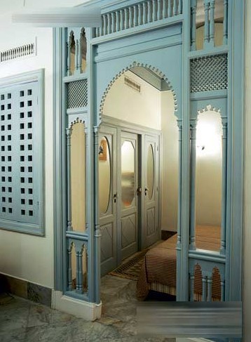 這一扇充滿獨(dú)特北非風(fēng)情味道的“門”位于北非突尼西亞,一間改建自Sidi-Boud-Said酒店的屋子內(nèi)。說這是一扇門,大家可能不會(huì)太認(rèn)同(因?yàn)闆]有門板和門鎖),但是這扇配合了拱門風(fēng)格的灰藍(lán)色門巧妙地將兩個(gè)不同的空間分割,讓睡房被分隔開來,營(yíng)造出睡房寧靜祥和的感覺。本身手工細(xì)致,制作者在木上刻畫出充滿了突尼西亞的風(fēng)情,沒有門板,更多陽光就能透進(jìn)睡房?jī)?nèi),配上白色和米黃色的墻身及云石地板,顯露出一派低調(diào)的高貴典雅。