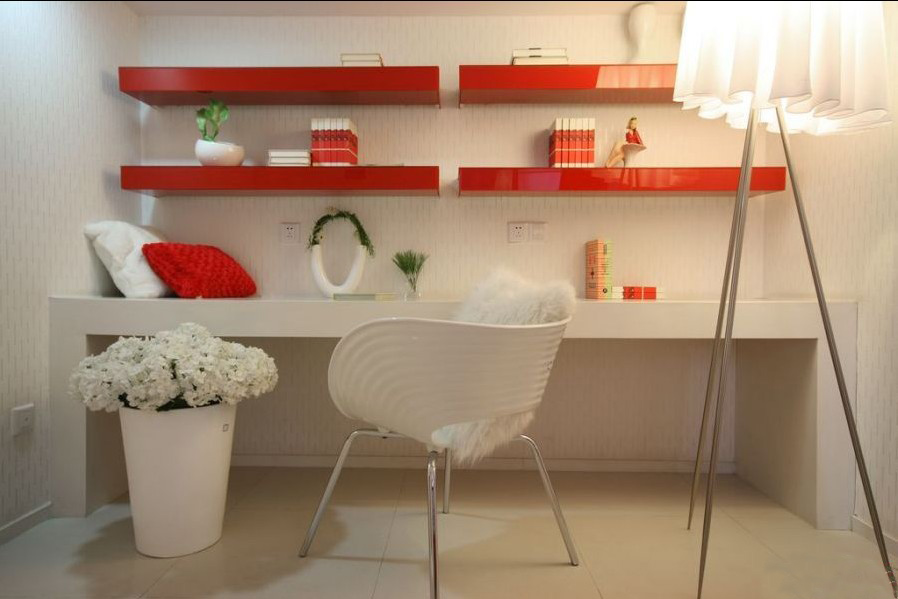 這個造型獨特的椅子,是不是覺得很眼熟,這款椅子,餐廳中也有用到過,是白色的,這里放了一款紅色的,這款家具是業(yè)主MM在淘寶上淘到的,價格相當?shù)膬?yōu)惠。