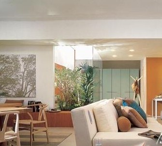 起居室的色調(diào)宜中性暖色調(diào)。面積較小的墻壁和地面的顏色要一致,以使空間顯得寬闊。照明燈具是落地?zé)艉偷鯚?。落地?zé)粢话惴旁诓环恋K人們走動之處,如沙發(fā)背左右或墻角,它和茶幾等組成高雅、寧靜的小天地,再與冷色調(diào)壁燈光配合,更能顯出優(yōu)美情調(diào)。吊燈要求簡潔、干凈利落。