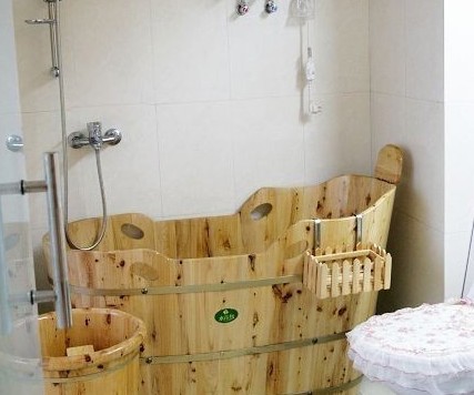 木桶木紋清晰,桶面布滿黑色木結(jié),給人溫馨、自然之感,在浴室貼上木紋理的瓷磚,放一塊仿麻的腳墊等,讓人有一種返璞歸真的感覺。木桶表面經(jīng)過抗菌、防腐等技術(shù)處理,底部設(shè)有排水裝置,消費者可根據(jù)需要在水中添加花瓣、牛奶、中草藥、精油等,是時下不少白領(lǐng)女性美容養(yǎng)生的方法。