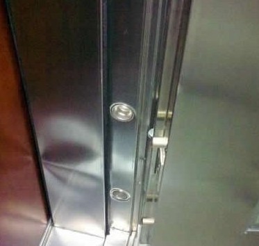 1. 看門框的平整度!以圖為例,由于門框的鋼質(zhì)不夠硬,導(dǎo)致變形。既然是鋼,但是居然變形了,不用多說,大家也知道好不好了。