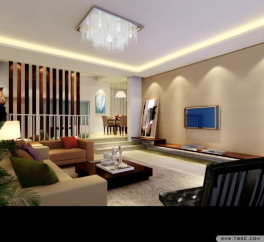 此種吊頂可用木材夾板成型,設(shè)計(jì)成各種形狀,再配以射燈和筒燈,在不吊頂?shù)闹虚g部分配上較新穎的吸頂燈,會(huì)使人覺(jué)得房間空間增高了,尤其是面積較大的客廳,效果會(huì)更好。