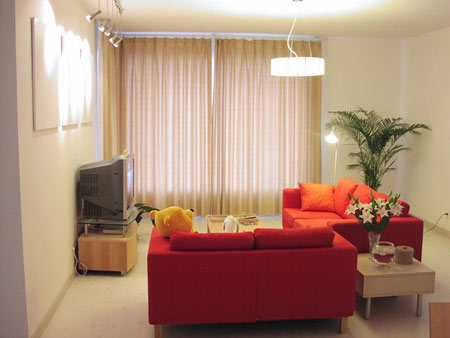 第四,節(jié)制運(yùn)用大家具。少用大型的酒柜、電視柜等,以使空間的分割單純化。如果大型家具十分需要,則要往角落放置為好。