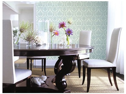 和絢麗色彩相映成趣的當(dāng)然是壁紙上的圖案,最常見的使用方法是在整體氛圍確定后,以局部點(diǎn)綴一些帶有花紋的裝飾圖案,把人的視覺重點(diǎn)自然地過渡到帶有圖案的墻面上,令鮮亮的色彩和各種圖案完美地融合在一起。