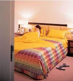 設(shè)計(jì)大師Pascal Mourguesh設(shè)計(jì)的'難忘今宵'床,簡(jiǎn)潔實(shí)用的設(shè)計(jì),舒適溫馨的造型,絕對(duì)合乎簡(jiǎn)約設(shè)計(jì)風(fēng)格。綠色的罩飾可拆洗,使用者可根據(jù)喜好選擇不同圖案和色彩的織物床罩,活躍了臥室的視覺(jué)感受。