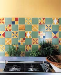 在廚房中小尺寸的瓷磚近來比過去更加流行,很多人發(fā)現(xiàn)小尺寸的正方形瓷磚可以砌出許多意想不到的變化,非常適合小面積的廚房墻面,有的小瓷磚規(guī)格只有5至13厘米,而且小磚也可用作點(diǎn)綴,效果極佳。  上海裝潢網(wǎng)