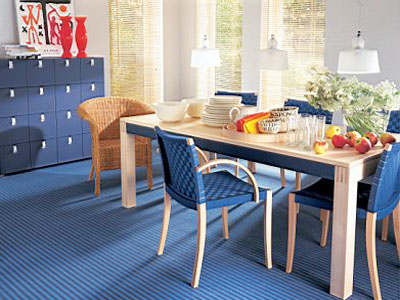 餐廳看起來很整潔,采用了藍(lán)色和白色為主,看起來很舒服。墻壁上做了藍(lán)色的柜子很實(shí)用,它就像是個(gè)百寶箱可以使餐廳變得很干凈。為了擺脫單調(diào)感,擺放了色彩較強(qiáng)的紅色裝飾品。白色的吊燈突顯了餐廳的別致感,色彩整體搭配得非常漂亮。