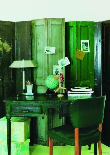 這件堪稱完美的屏風其實是用舊櫥門改造而成,它還有一個實際的用途,那就是當擺放在書桌邊的記事欄,有了它,我們就可以不用每天對著傻傻的電腦屏幕看東西了。其實你完全可以自制,是開玩笑嗎?當然不是!那我們就動手吧:先在板上涂一層磁化層,便于我們日后貼上小便箋之類的東西,接著再在上面涂上具有英式風格的褐色,那樣看起來會很時尚。為了使改造后的屏風具有做舊效果,我們可以使用一些化學原料——堿式碳酸鉛溶劑來處理屏風的表面紋理,也可以用砂紙手工打磨,這會讓它呈現出古舊的效果。