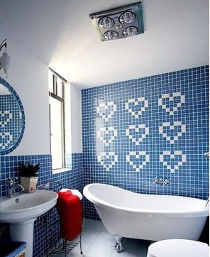 首先,整個(gè)浴室的色調(diào)要較淡,較冷,這樣,感覺上較為通風(fēng),視覺上能產(chǎn)生一種空間擴(kuò)大的效果。