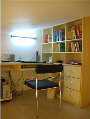 與書(shū)房裝修聯(lián)系最緊密的便是書(shū)桌,很多在書(shū)房要完成的事情都是圍繞書(shū)桌展開(kāi)的,因而要讓小小書(shū)房的設(shè)計(jì)也以書(shū)桌為中心。與書(shū)桌契合十分嚴(yán)密的等長(zhǎng)書(shū)架,讓要查閱的資料隨手可得;書(shū)架與書(shū)桌間的空隙也不要浪費(fèi),它可以作為信息的展示板。