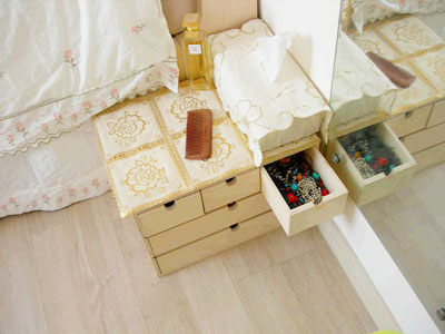 這是小房間的地臺(tái),平時(shí)沒(méi)有一點(diǎn)用。客人來(lái)了還可以打地鋪