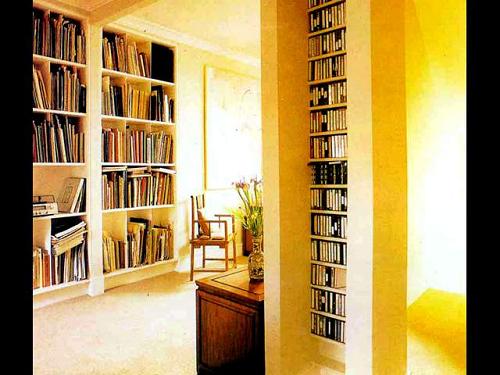 喜歡讀書的人,大多都有理性的一面,講究秩序。面對眾多的藏書,如何做到藏而不亂呢?可以將書柜分成很多格子,將所有藏書進行分門別類,然后各歸其位,這樣要看的時候,依據(jù)分類的秩序,就省去了到處找書的麻煩。藏書太多,不妨將書柜做得高一些,取時借助一把小扶梯。