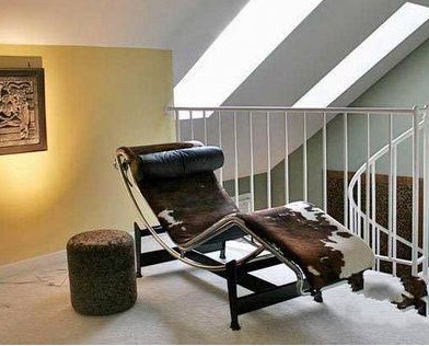 其次需要考慮的是,怎樣盡可能有效地利用閣樓的面積。對(duì)斜坡屋頂下方空間的處理非常重要。標(biāo)準(zhǔn)化家具在這里沒有太多用武之地,最好的辦法是把頂端做成與斜坡屋頂相吻合的傾斜樣子。當(dāng)然不一定要全然貼合,將架子和柜子由高至低排成一列也能達(dá)到類似的效果。與底樓裝修的最大差異在于,閣樓的高度必須被列入考慮范圍:如果屋頂與地面形成夾角,人無法在這樣低矮的空間內(nèi)活動(dòng),但是可以利用它來儲(chǔ)物;如果閣樓有窗戶,其底部到地面的距離一般較短,也可以被用來儲(chǔ)物。而我所見過最反向思維的一個(gè)設(shè)計(jì),是進(jìn)一步將地坪抬高,擺上浴缸,躺下洗澡時(shí)直接就可以看到窗外的藍(lán)天白云。