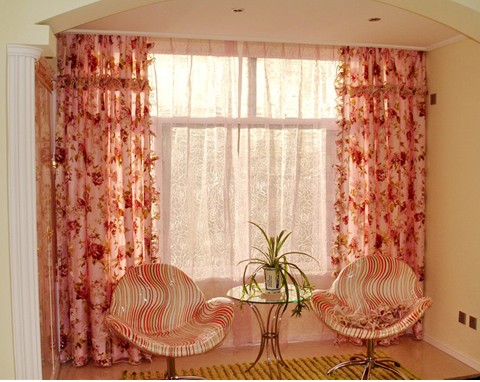 第四種是分開的單簾,與普通簾不同之處是在簾頭的外側(cè)多收碎褶,簾頭內(nèi)側(cè)裝飾花球,收攏時,扎掛在花球上,褶幔間柔情無限。
