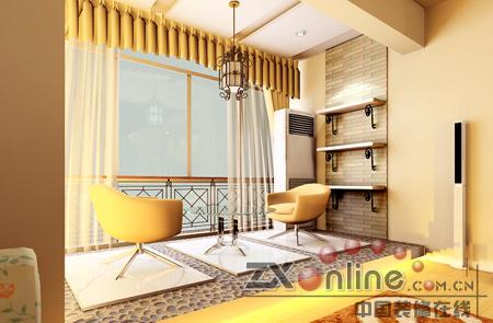 茶式風格的陽臺設計是輕裝修、重裝飾的典范。古典的紅木雕花榻配以精致的小木桌;紅木雕花的燈籠下,擺放著全套的功夫茶茶具;傳統(tǒng)的吉祥圖案,在落地窗簾與真絲座墊上跳動;純毛地毯的色調(diào)又與桌上的瓷器相互唱和;飄逸的落地紗簾遮掩著現(xiàn)代的塑鋼窗。