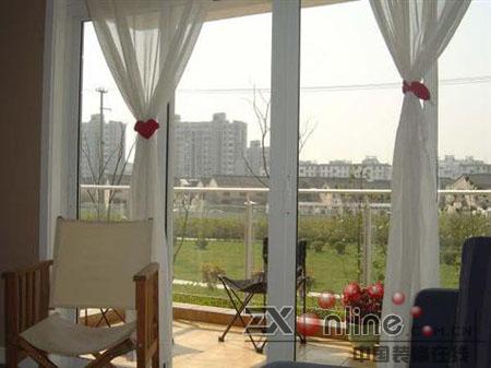 如果是家里面積太小,或者想物盡其用,可以將陽臺布置成客廳,透明的玻璃和淡雅的布簾將陽臺隔成一個獨立空間,在陽臺內(nèi)側放上沙發(fā)或凳幾,在陽臺兩側置上兩只角架,然后以倒梯形置上花木盆景,不但同樣有迎賓的隆重氛圍,而且可使賓客仿佛置身于戶外,感到大自然近在身邊。