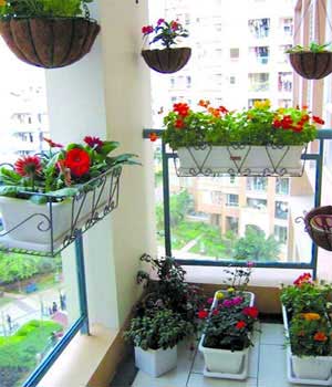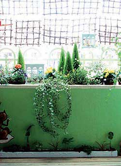 在陽臺上種花栽草也要有巧妙的搭配,否則其效果就會像野草一樣雜亂無章。陽臺的花草園地,既要便于澆水和管理,又要使各種花卉都能充分吸收到陽光?;ú莸姆胖靡灿性E竅,通常有鑲嵌式、垂掛式、階梯式和自然式四種?!拌偳妒健币话阌迷谝呀?jīng)裝修而且面積較小的陽臺上,利用墻壁鑲嵌特制的半邊花瓶式花盆,然后栽種觀葉植物?!按箳焓健笔怯眯∏删碌娜萜髟苑N吊蘭等小型植物,然后懸掛在陽臺頂板上。也可栽植藤蔓或其他有纏繞能力的觀葉植物懸掛在陽臺外?!半A梯式”是在陽臺內(nèi)搭起階梯,進行立體盆花布置,一般的植物都可利用這種形式栽培。“自然式”利用陽臺外的盆架栽種一些木本藤蔓植物,使植物自然下垂,形成一種自然景觀。