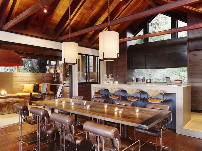進(jìn)入這個(gè)客廳,到處都是現(xiàn)代的感覺,可能多處的木質(zhì)的家具依然遺留舊式日式風(fēng)格的影子,不過餐桌上方的吊燈就讓我們一下子感覺到了濃濃的和風(fēng)吹過來。