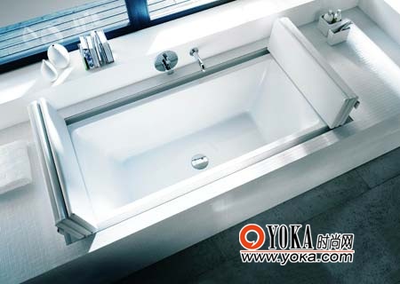 浴缸內(nèi)部采用人機(jī)工程設(shè)計(jì),在兩側(cè)設(shè)有實(shí)用的凹處,既為高個(gè)子提供扶手或踏腳,也為矮個(gè)子提供必要的支持。有些浴缸容量高達(dá)520升,使用者幾乎可以在溫暖的水流中自由漂浮,而且可以隨意改變位置,感受讓水的浮力托起,是最好的伸展放松之道吧。