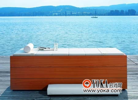 配合整體沐浴環(huán)境,浴缸缸體材料不僅有瓷釉,其實(shí)還會(huì)用到多種材料,打造不同風(fēng)格。更加精細(xì)的,還會(huì)有室內(nèi)室外的區(qū)分。櫻桃木和黑檀木面板可以在戶外使用,而赫爾辛基樺木貼面或斑馬木,美洲胡桃木和深褐色實(shí)木貼面則營造出溫暖宜人的室內(nèi)氛圍。為平臺(tái)和枕頭以及白色亞克力浴缸所手工縫制的靠墊與浴室家具表面組合在一起,散發(fā)濃郁海上休假風(fēng)情。