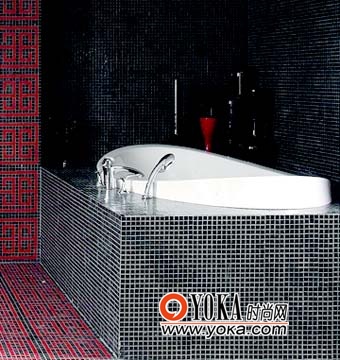 紅與黑,加上典型的中國風(fēng)圖案,與中式浴缸共同組成典型的中國四合院式風(fēng)向標(biāo)。