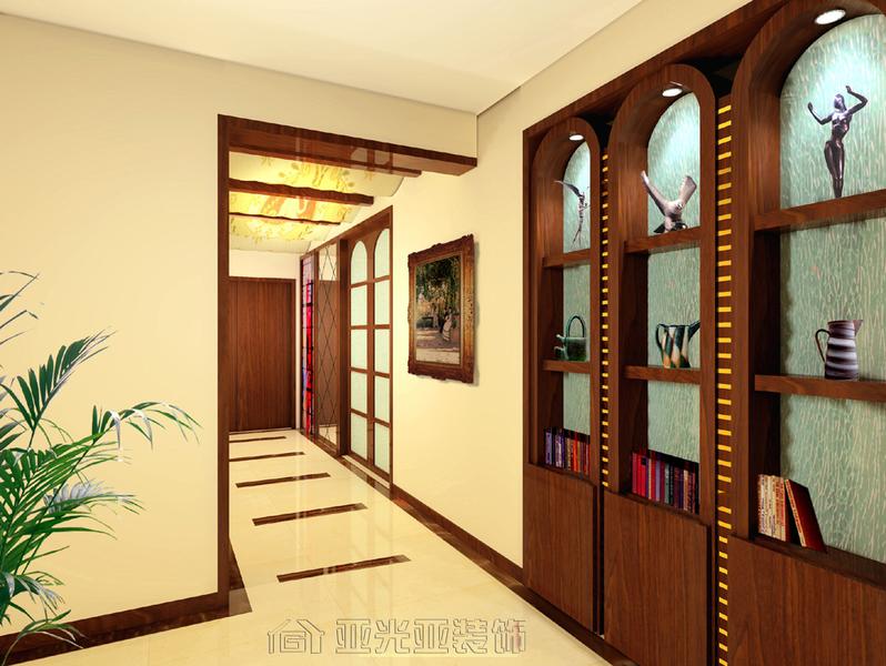 諾伯修茲在《實存,空間的建筑》一書中指出:“空間的概念并不具單一性。除了產(chǎn)生具體活動的空間以外,尚有瞬間取向的知覺空間、具穩(wěn)定意象的生存空間、物理世界的認知空間、藝術空間、單純邏輯的抽象空間以及美學空間?!?nbsp;光與影在空間情境的塑造上是不可或缺的應用元素之一。白天因日照時間的流動而產(chǎn)生漫射入室的光、影,隨著自然的軌跡變化:在夜間,利用人工光源的交替、轉(zhuǎn)換,而產(chǎn)生不同的光影情境,成為設計本案的精神。 由于房間本身足夠的使用面積與合理的布局,因此無須在空間結構上大玩蒙太奇、解構、整合這些常見手法在這里都難覓其蹤。只是將書房與客廳、過道之間的隔斷拆改為玻璃材質(zhì),這樣使書房與客廳、過道之間有連慣性,而且空間上也顯得更加通透。在這里,設計師同時運用色彩和不同的材質(zhì),如冰山玻璃、軟木材料來豐富空間的層次和變化,仿佛不經(jīng)意間選擇的帶有紋理的軟木,便使純粹的直線架構起的空間自然地避免了走向極端的線的僵局。在燈光方面運用射燈、落地燈、吊燈等不同形式的燈光,來烘托和體現(xiàn)不同空間、不同材質(zhì)的變化,在色調(diào)方面,同樣主要以暖色調(diào)為主,追求的是整體的和諧統(tǒng)一。玻璃看似與暖色主題相沖突,但也帶來了產(chǎn)生變化的機遇,好象向我們闡述了主人的一種處事哲學。