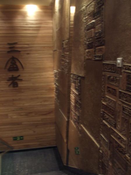 一個業(yè)主朋友推薦我去這家三富者餐廳吃飯,這家餐廳主營韓國菜,經(jīng)受不住誘惑,這周末就去了,總體感覺很不錯,他們家的設(shè)計也蠻有趣的,進門下樓才到餐廳,這個樓梯間的設(shè)計很不錯,也拍下照片大家可以看看,但是遺憾的就是在樓梯下面的那里,那里其實很漂亮,還有茉莉花香,但是沒有燈光,仔細(xì)過去一看還讓人感覺有點不干凈的感覺,要是這里改善的話,我想一定更棒。