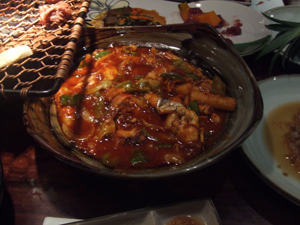這里的環(huán)境不錯,服務(wù)也不錯,菜的口味也很正宗,要是去的業(yè)主要注意了,不要點很多哦,因為他們的配菜很多,而且很豐富,我們這次就點的太多了,因為前期我們怕不夠吃,但是他們的那個烤肉很不錯,自己腌制好的牛排肉吧,好像是,很不錯,很嫩,其他的我們還點了海鮮炒年糕,這個很棒,還有那個雞蛋羹也跟別人家的不一樣,最后我們還要了一個火鍋,我們很能吃的吧,但是最后還是剩下了,所以去的朋友一定記住了,不要點很多,其實2盤肉就可以了,在加上一點特色菜品嘗一下,很不錯。下面是照片,看看吧