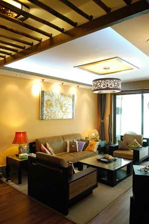 概要: 沙發(fā)無論是色彩還是造型都與整個房間的風(fēng)格很搭調(diào),莊嚴(yán)高貴的紫檀木配上大氣的布墊,營造出古樸內(nèi)斂的氛圍,下面鋪了席子,是懷舊的自然情懷。 裝飾品的搭配對于風(fēng)格的完整也很重要,設(shè)計師特意挑選了石座人像臺燈、藤球燈、和傳統(tǒng)圖騰裝飾畫。這些都具有明顯的中華民族特征,是本次設(shè)計風(fēng)格的完美點化物。